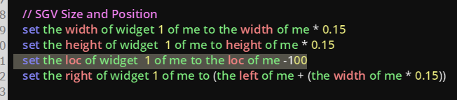 set the loc of widget 1 to (item 1 of the loc of me - 100),(item 2 of the loc of me)