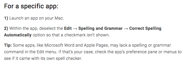 You can do this in the Applications Edit Menu under Spelling and Grammar and disable ‘Check Spelling While Typing’."