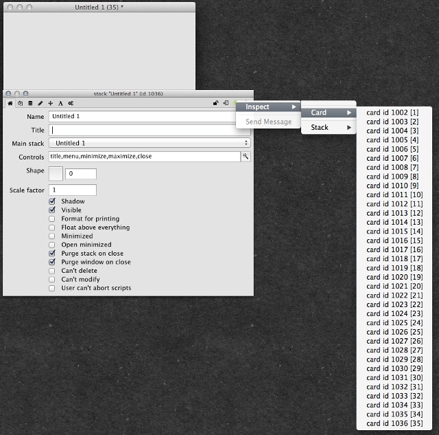with anywhere between 5 and 10 cards. This had to be made that way as, on my first attempt, authoring the thing as a single stack with 500 cards everything was unbelievably clunky as a stack, and my computer ground to a halt trying to make a standalone.