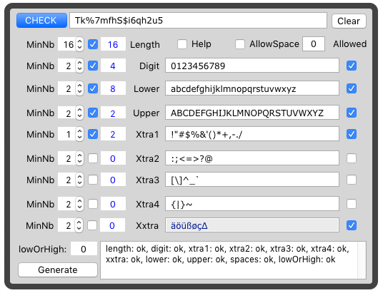 • to check whether a given password fulfils some "char group rules" or