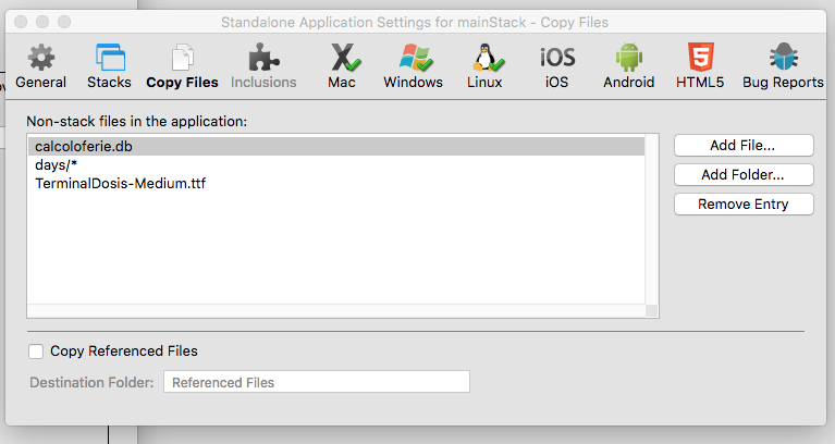 Everything you add via the "Copy files" tab in the STAB Settings, will get copied to the "Resources" folder, which gets created during the compilation inside of the app package, and can be accessed with that specialfolderpath("resources") which LC nicely maps to whatever folder Apple is requiring today for this kind of "resources".