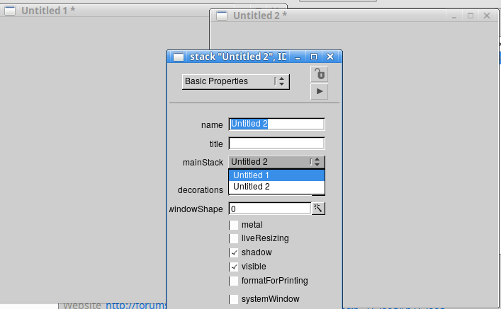 set the mainstack of the mousestack to "Untitled 1"