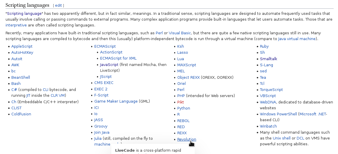 I think another problem in understanding exactly which category Lc falls into comes literally from how many categories some languages fall into. For instance, if you go to the "List of Programming Languages" on Wikipedia, you'd find Lc listed as a Scripting language as well as these other scripting languages -
