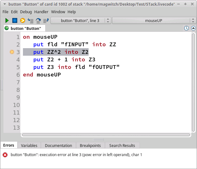 mouseUP: line 1: put fld "fINPUT" into ZZ