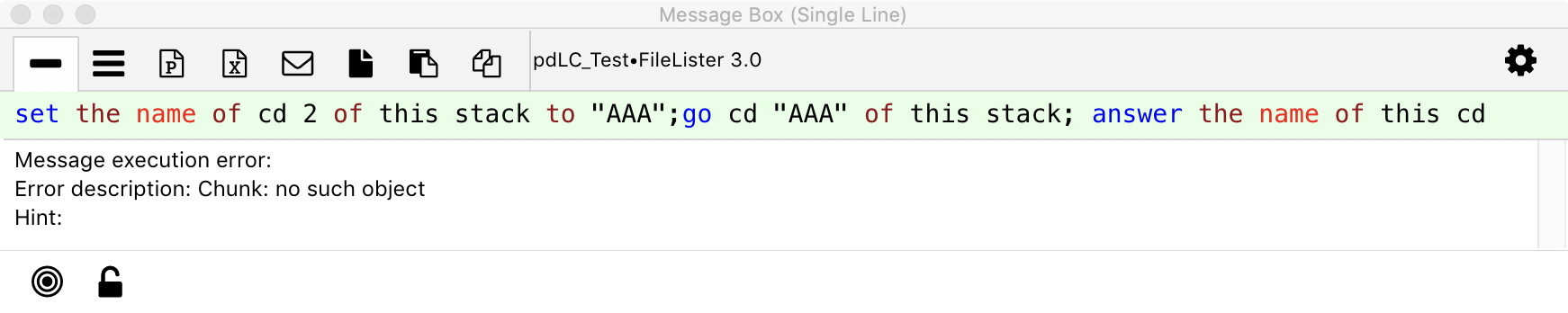 just tested with LC 9.5.0 Stable (fresh stack with 2 unnamed cards and same script in message box)