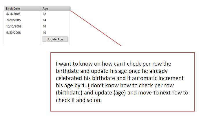 How can i check in the column of data grid the (Birthdate) and update (Age). see the below example.