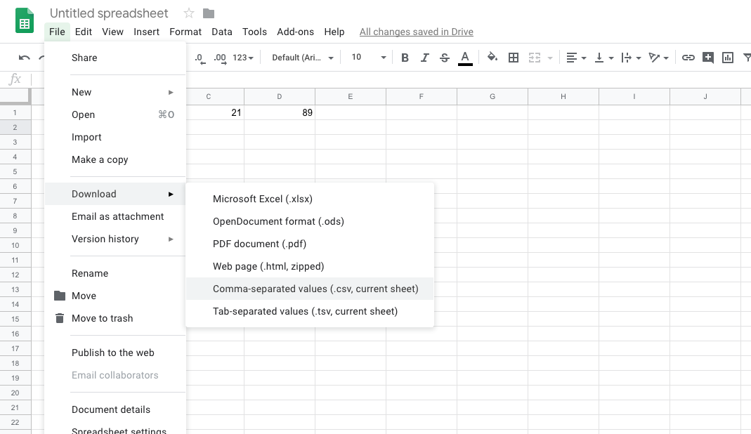 Personally, I'm a lazy slob and download the Google Sheets as CSV documents