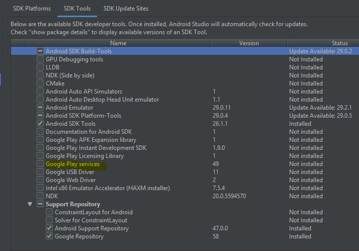 Re: Unable to locate Play Service dependency