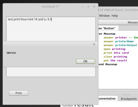 (probable bug) if I specify a path for the pdf file (I sent it to my desktop) that is sticky until I restart LiveCode. Switching to a physical printer changes the printerName from "print to file" to my printer name, but the printerOutput never changes to "device", it just stays at the Desktop file path.