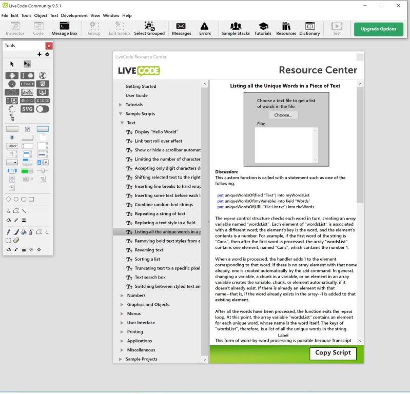 I was disappointed to find the "Listing all unique words" Resources section no longer allows the code to be copied and the Tutorial for the same thing is incomplete and has bugs in it.