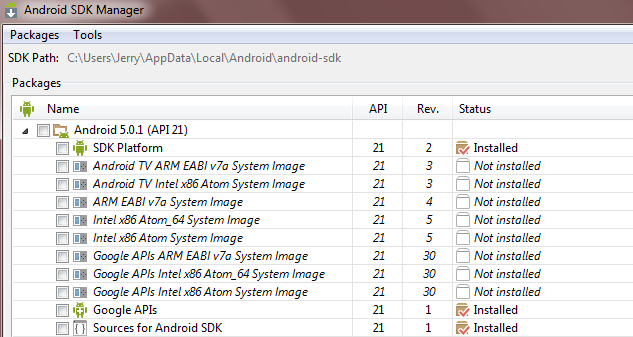 On 1 laptop i have this(the old way command line tools), on another PC i use android Studio