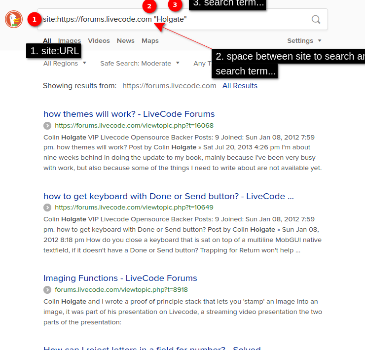 site:https://forums.livecode.com/ keyword1 keyword2 etc.Re: Cannot Search Forum Bug
