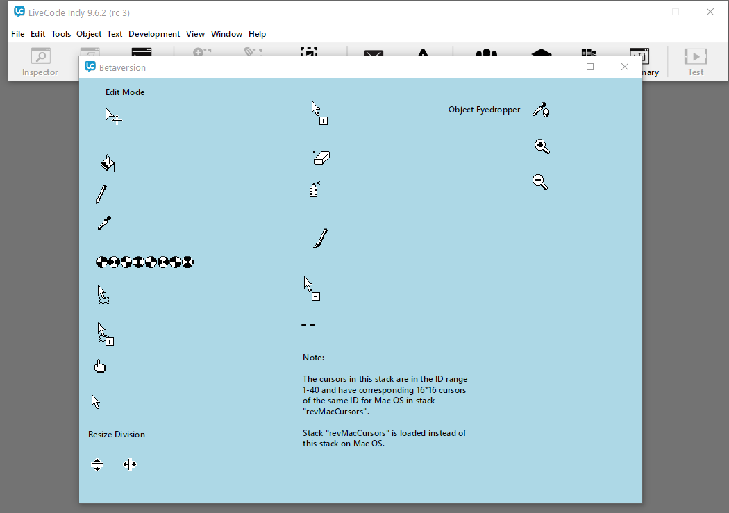 I then openend the revCursors substack and found a window or card with the title "Betaversion" that contains a lot of different mouse cursors.