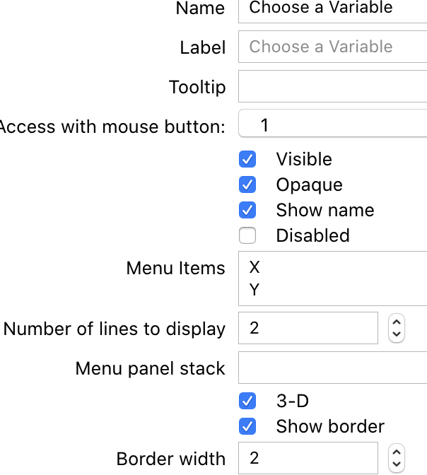 I click on the "choose a variable" dropdown button, pick either menu item X or Y, and it does absolutely nothing. No answer, no value put into field "test".