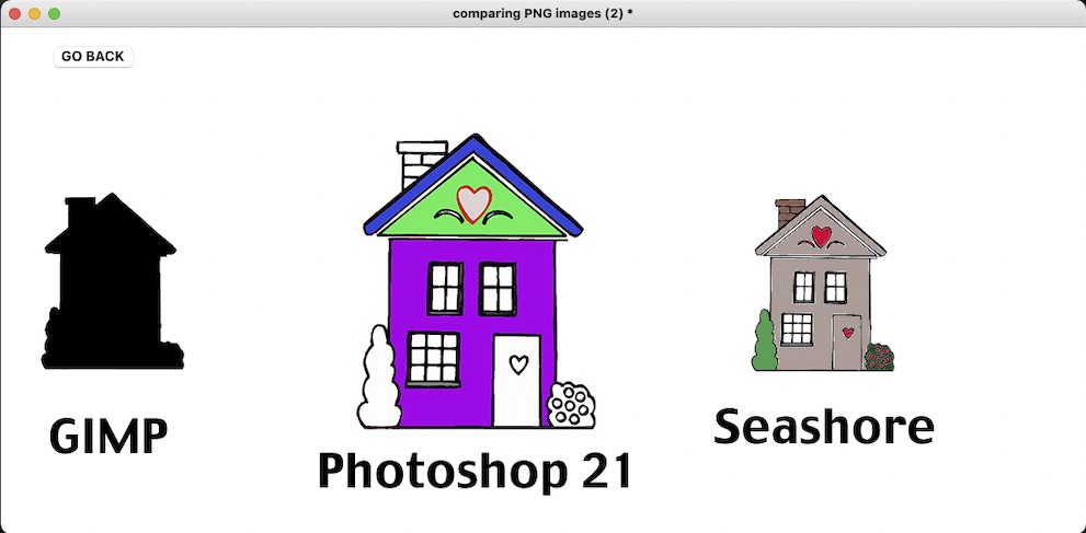 I ran up a stack containing some PNG images I downloaded from the internet alongside PNG images made in GIMP.