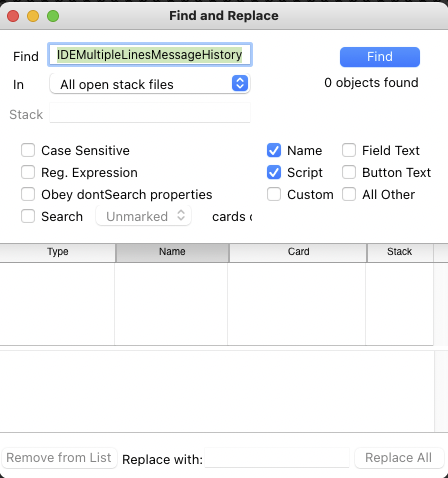 Line : 50 -> put revIDEGetPreference("IDEMultipleLinesMessageHistory") into lHistory