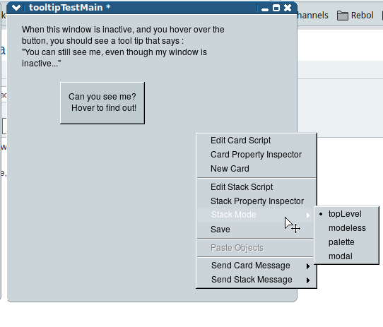 Show contextual menu in run mode: