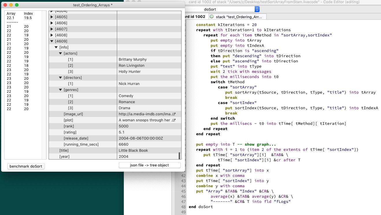 # put "5th sorted element: " & tArray[5]["data"] & ", elapsed: " & the milliseconds - t0 && "ms" into field "metrics"