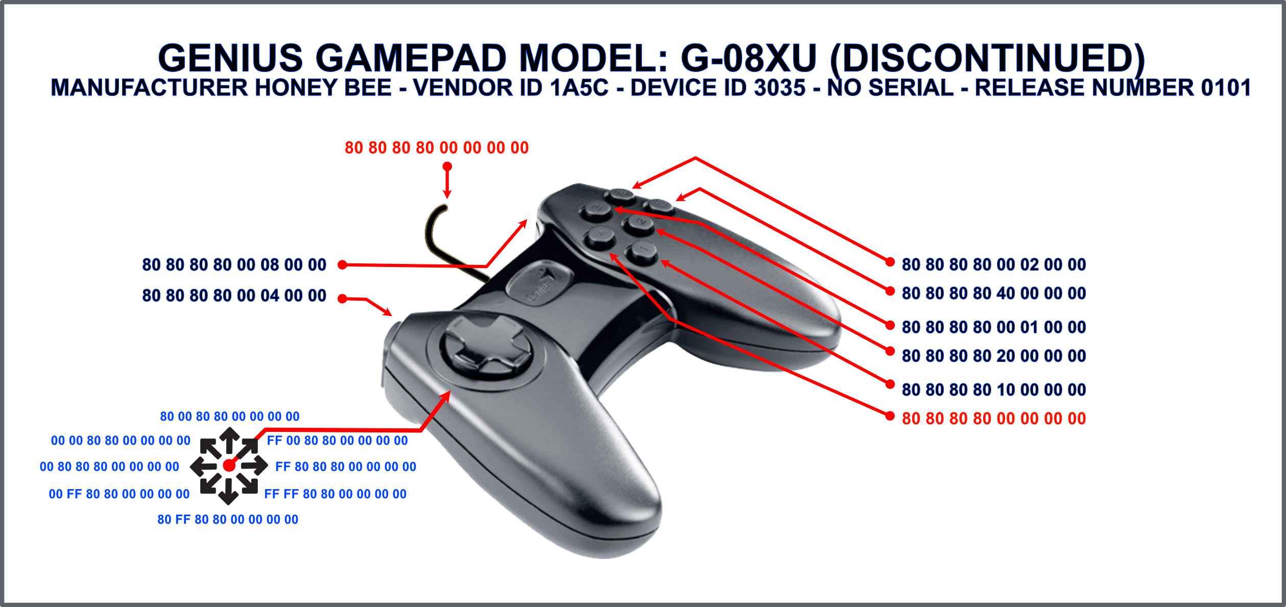 These are the codes for the discontinued Genius gamepad: