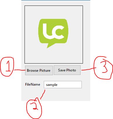 step 1. Browse a picture here is my code below