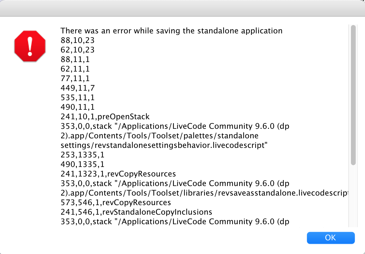 I'm trying to build a standalone for MacOS for a simple stack. By 'simple' I mean it does nothing fancy but collate and sort data from the internet. I try to follow whatever [outdated ?] doc I can find in lessons.livecode.com.