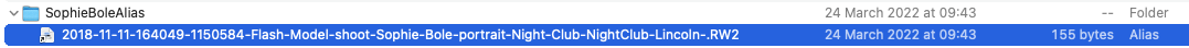 lrwxr-xr-x  1 stam  staff  155 28 Mar 21:10 /Users/stam/Desktop/2018-11-11-164049-1150584-Flash-Model-shoot-Sophie-Bole-portrait-Night-Club-NightClub-Lincoln-.RW2 -> /Volumes/Image_Library_SSD/Photo-Library/2018/2018-11-11/2018-11-11-164049-1150584-Flash-Model-shoot-Sophie-Bole-portrait-Night-Club-NightClub-Lincoln-.RW2
