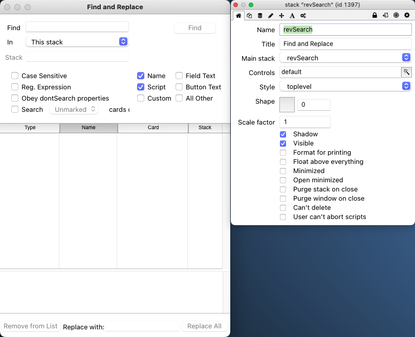 Come to think of things the Find & Replace (revSearch) stack is a very useful tool which those