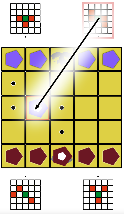 is that on selecting a card and a piece the possible moves that that piece can make are indicated: