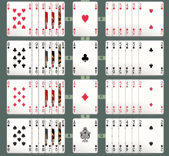 tCards now contains 13 2,12 1,11 1,10 4,9 2,8 1,7 3,6 2,5 4,4 2