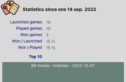 After playing 6 games and winning one, the stats said I had won 3. Then after several failed attempts, I won a second game; the stats still say 3 won, and the Top 10 list appears to be a Top 1 list. Except my last win had a better score than the one on the list...