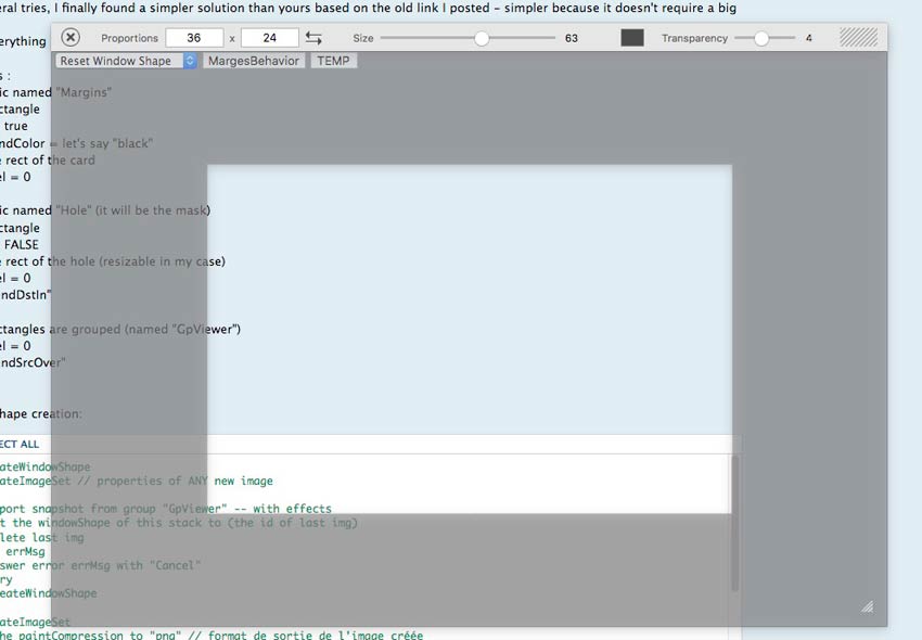 The transparency of the margins can be modified - before "recreateWindowShape" with: