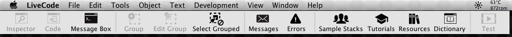 One is the standard menubar, (Files, Edit, etc) and the other is the "Toolbar" ("Inspector, Code, Message box...)