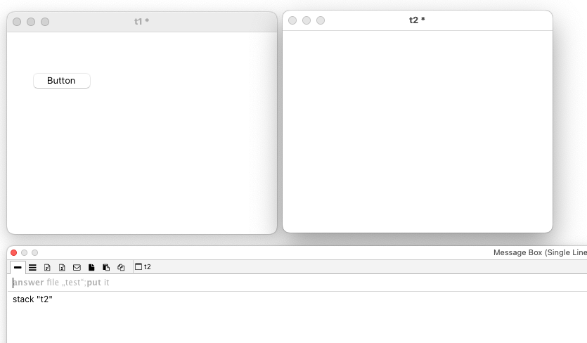 "t2" is the topstack, button script in stack "t1":