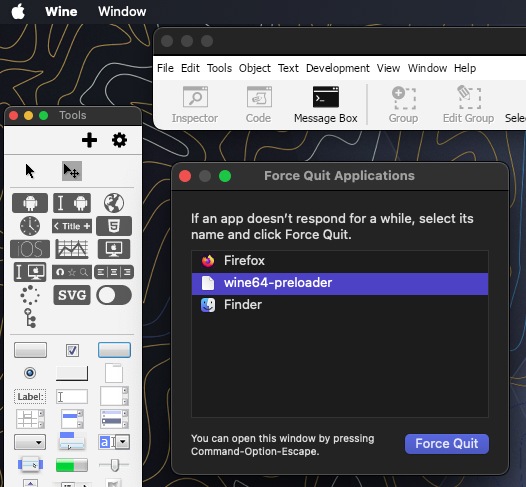 ...this is probably a problem between MacOS 14 and WINE, rather than between WINE and LiveCode.