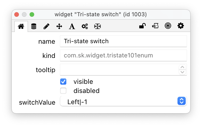 The widget is similar to the existing switch control widget, but offers 3 states instead of 2 (I needed this to indicate 1 of 2 values or unassigned).