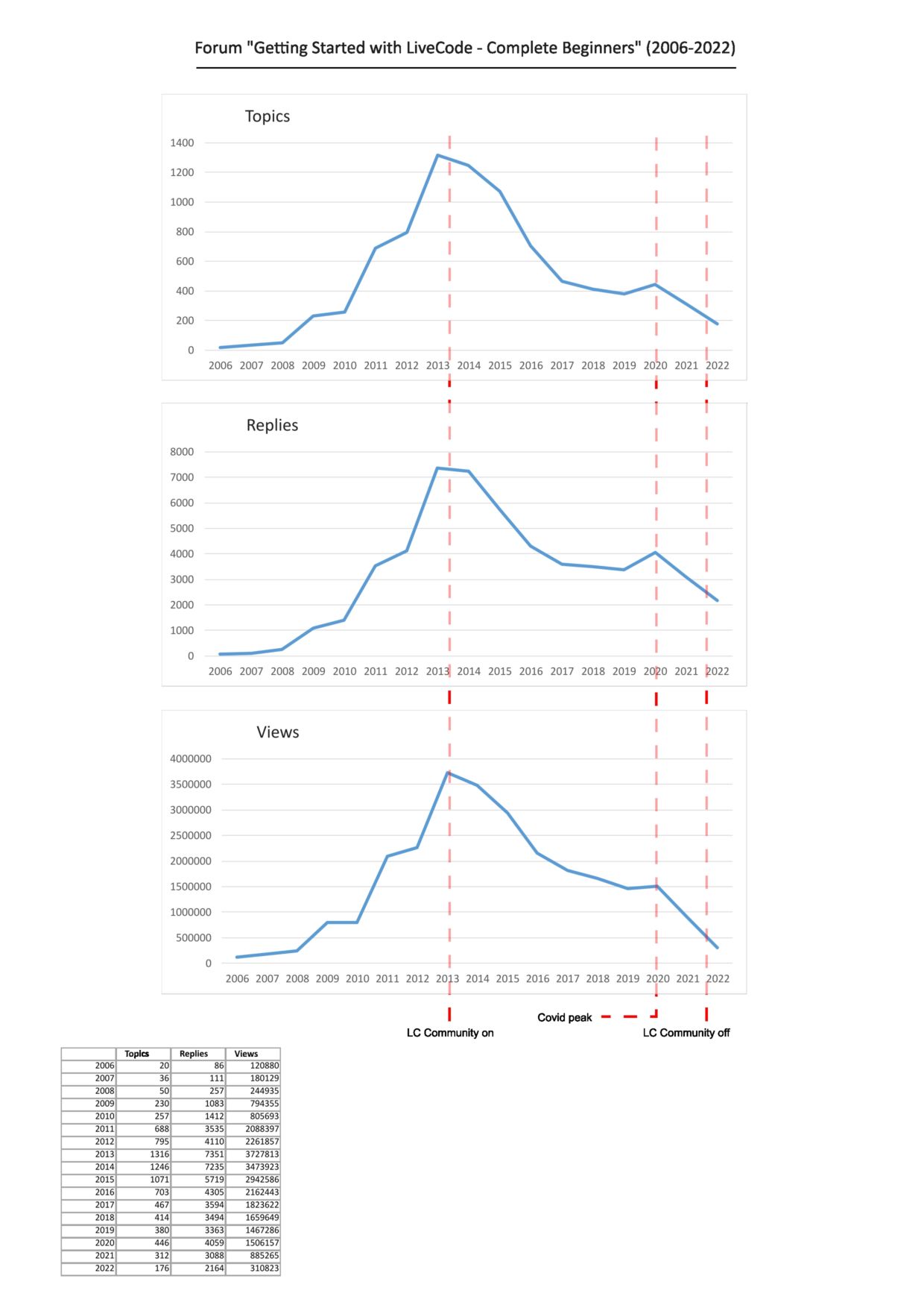 Yes, but in that case the curve of views would probably have moved in a different direction to the curve of topics, which is not the case here.richmond62 wrote: ↑Tue Apr 02, 2024 1:25 pmIt might also be that a lot of those 'Complete Beginners' became passive observers rather than active participants.
