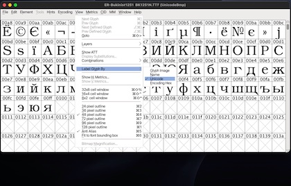If one opens a Windows 1251 font using Fontforge (instead of a popular and extremely expensive commercial font editor) the Hex addresses are 'right there' for all to see: