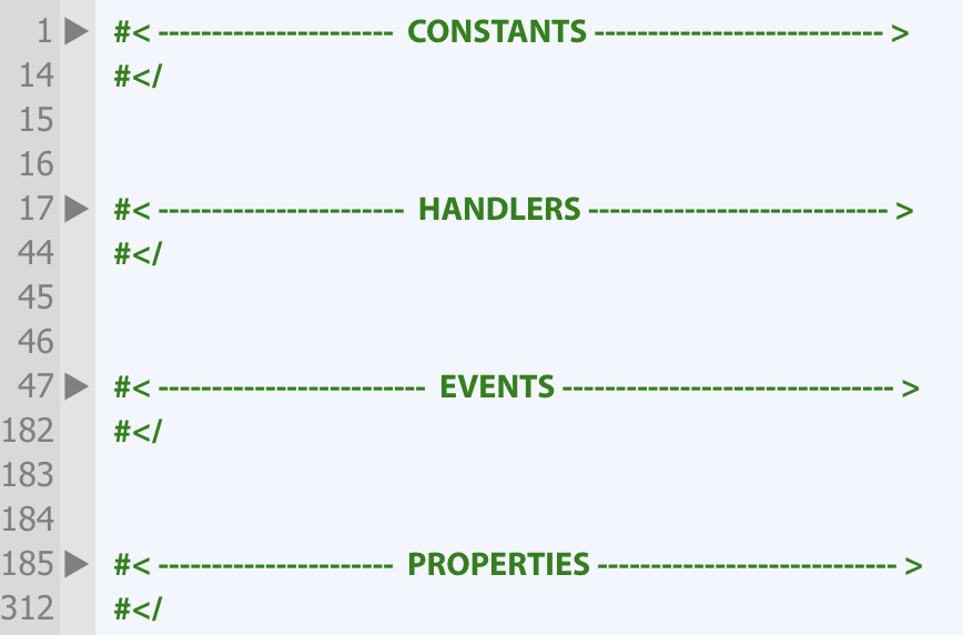 One further observation: Your solution recognises multi-line comments (/*...*/) and assigns disclosure triangles correctly, but these are not collapsed with the Collapse All (cmd-K) command.