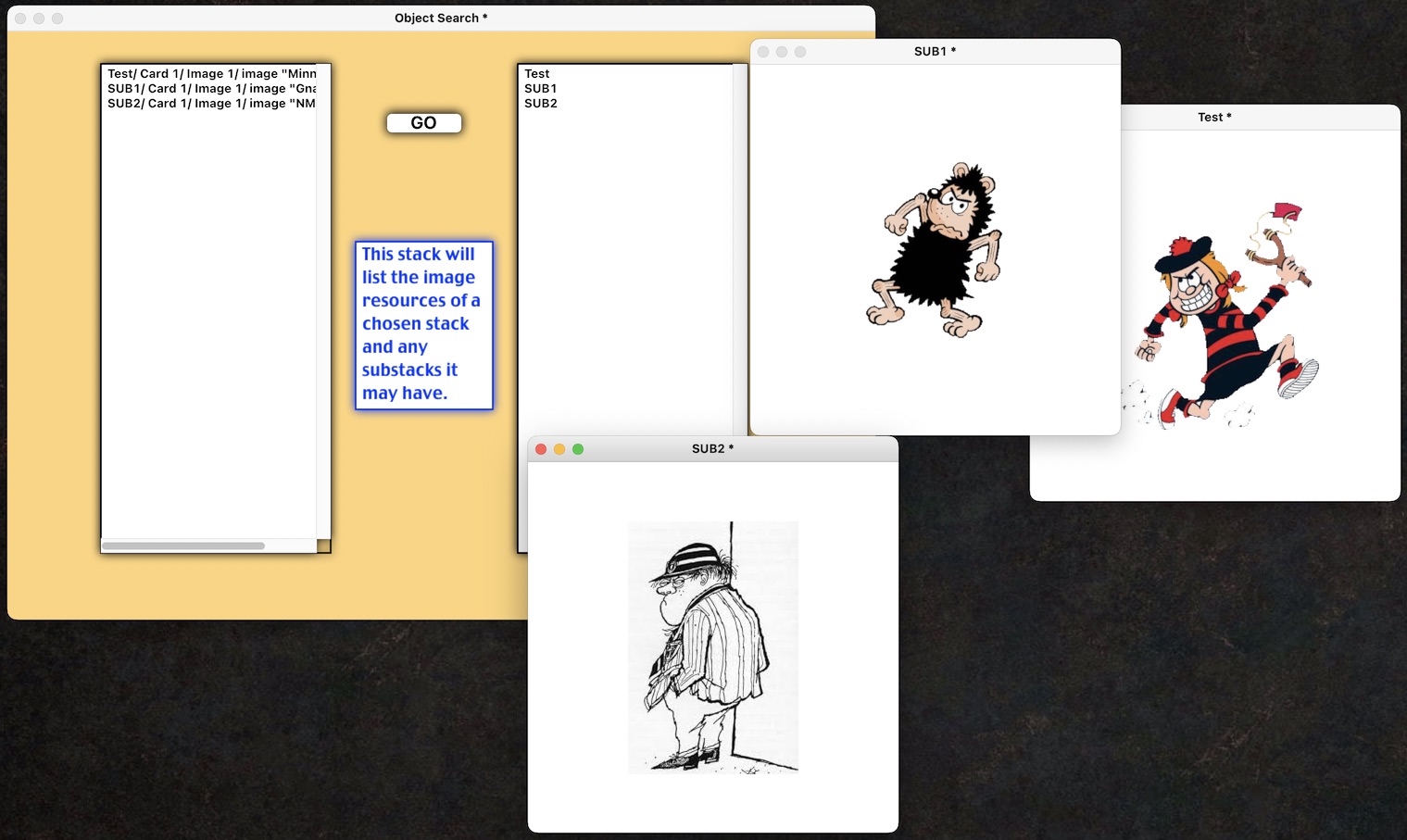 I wonder if there is a way to find the names of all the images both in the main stack, and in its subordinate substacks and pop them into a field along with their IDs . . .