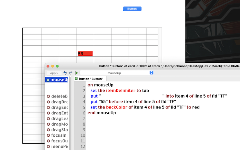 Rereading that whole thread, I recall trying to work out a possible solution using certain field properties. Again, a table field is just a field, but with certain special properties. Two of those are its "hGrid" and "vGrid" properties. It occurred to me that these identified the bounds of the enclosed "cell", even though there is no such thing as a cell. LC knows about those bounds, or it could not draw the lines, but I saw no way to exploit them.
