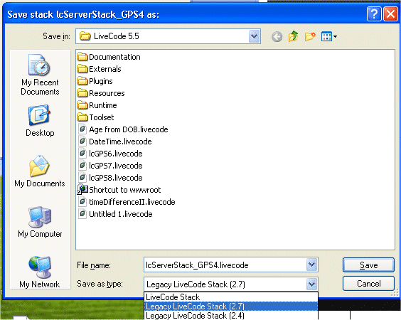 Save Stack as Legacy LiveCode Stack 2.7.gif