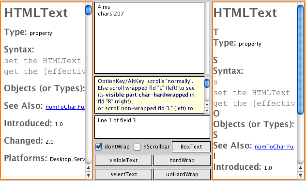 well, the problem is with non-fixed lineHeight and horizontal scroll on with don't wrap true. As to your suggestions in a prior post. This makes the whole thing slow since you have to get the formattedRect of a lot of chunks.But the needed time increases proportionally with length (for wrapped text say from 80 to 2000 millisecs as length goes from 10KB to 100KB) because you work with the whole content.