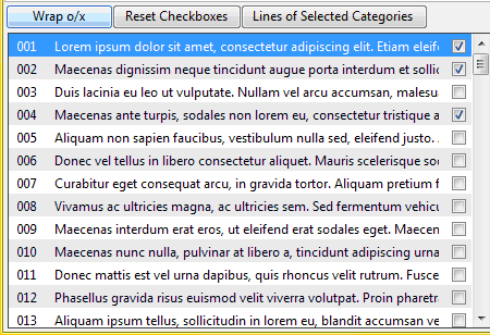 In the attached stack I have text lines belonging to 3 categories that can be selected with 3 checkboxes.