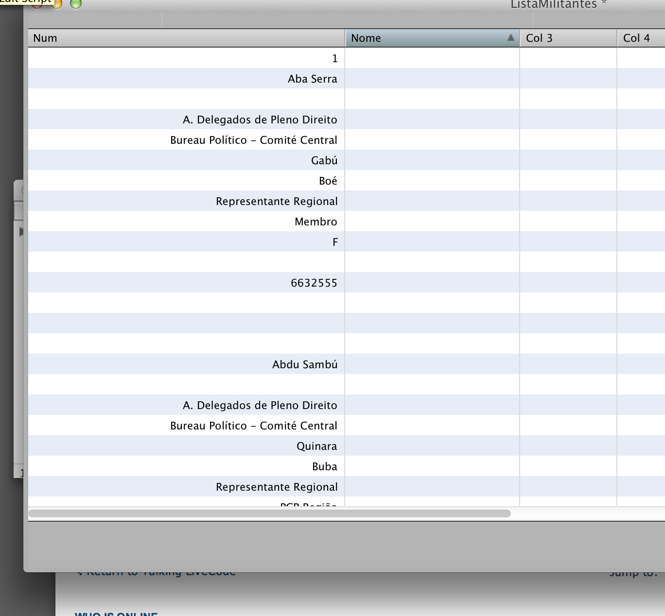 You probably have some CR or LF or Tab character hidden within "Nome" in your MySQL data.jlspereira wrote: 2. the first records look ok, but then , suddenly, the columns do not keep the column reference of the original dataset