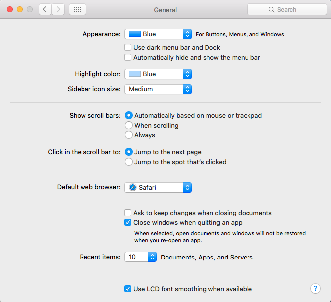 Here are images of the "General" system preference panel from 10.6 (Snow Leopard), Tiger (10.4), and Jaguar (10.2). [I've also put the images on a web page at https://share.plaidflannel.com/lc ]