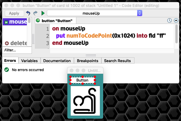 Addendum to issue 1. I added a line in the field mouseUp routing to set the vScroll of the output field to the same as the languages field, as in: