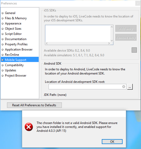 I am a High School teacher that purchased Live Code Education (Indy). I am getting the same error of "none" for the JDK. This only happens on student account. On the same computer with my admin account, everything works perfectly so this is isolated to a student account issue. Android SDK and JDK are properly installed and works fine, can develop Android apps in Android Studio (which I use in a different course). It seems the student account's installation of LiveCode cannot find the JDK. Is there anyway for me to tell LiveCode its location? Does LiveCode use a system variable? How does LiveCode determine the location of the JDK?