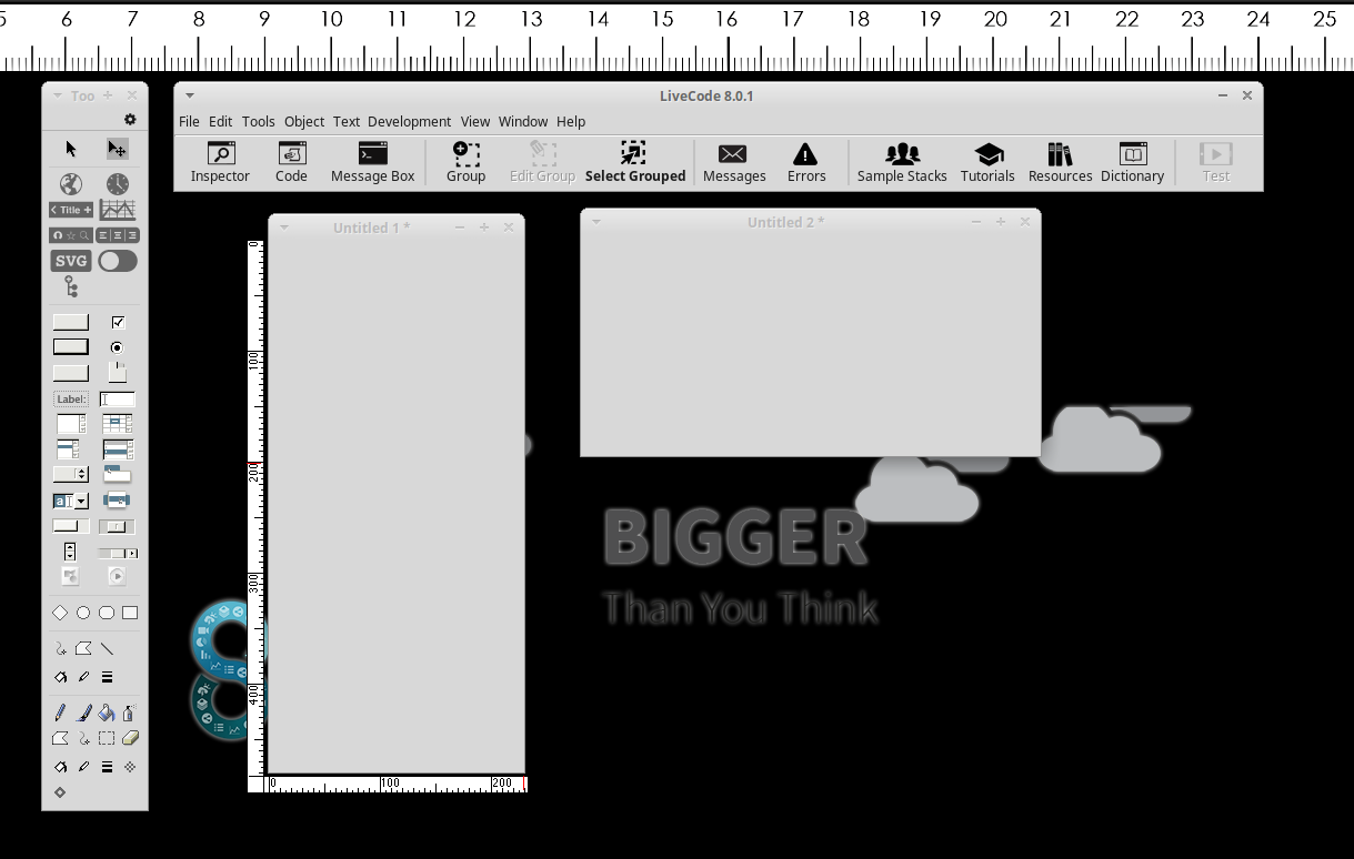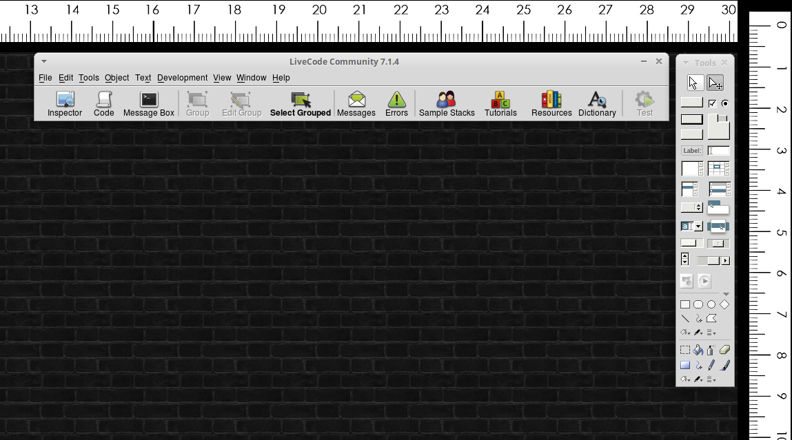 It was slightly fiddly on Ubuntu at first for me, almost like it needed to be kickstarted to get going. Definitely needs a toplevel stack to be opened, and I find the rulers were reliably present when I had at least one control on the card in that stack. Not yet sure if a bug or a feature; can't say I use the rulers often.