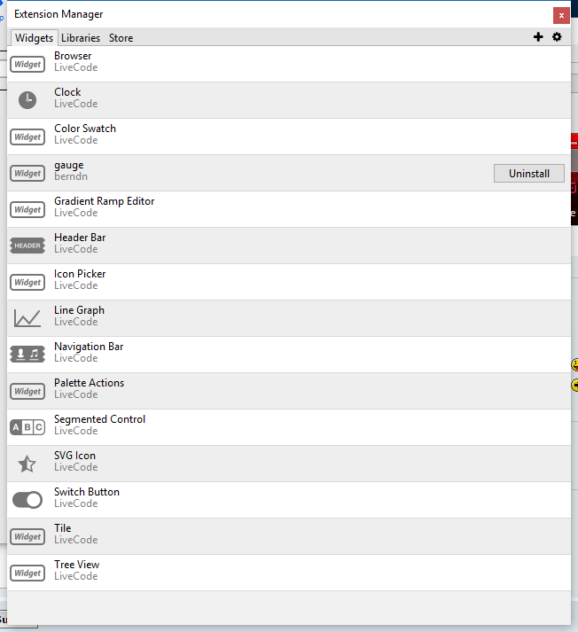 Now Gauge widget should again be in the toolbar and also accessible from the "Object" menu. And the dictionary should show up in LC dictionary -> API