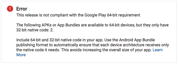 Even if It was targeting a single system structure, it shows the same warning message I got previously. It seems that Google made the App Bundle mandatory for developers.